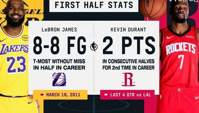 值得一提的是,这是詹姆斯生涯第二次上半场8中8,无巧不成书,上次正好是15年前的今天。