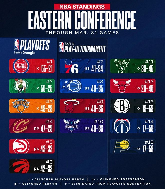 猛龙今天爆冷输给西部倒数第一的国王,战绩与75人相同,两队交手战绩为2胜2负,75人大西洋赛区战绩占优,反超猛龙进入了第6,逃离了附加赛。