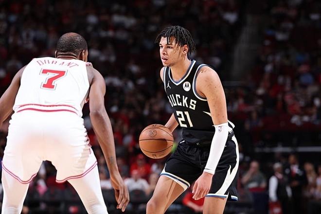 本场比赛中,雄鹿虽然输掉了比赛,但是球队的先发锋线新星奥斯曼-吉昂(Ousmane Dieng)的表现还是相当不错的。吉昂全场出场44分41秒,投篮31中15,三分线外7中1,罚球5中5,在外线投篮手感不佳的情况下还是得到了全场最高分36分外加7篮板10助攻1抢断的准三双数据,还有5次失误和1次犯规,正负值为-11。值得一提的是,36分和10助攻都是吉昂职业生涯的个人数据新高,本场比赛也是他在NBA赛场上的个人最强之战,本场比赛他的表现甚至能够让大家依稀看到一些扬尼斯-阿德托昆博(Giannis Antetokounmpo)的影子。