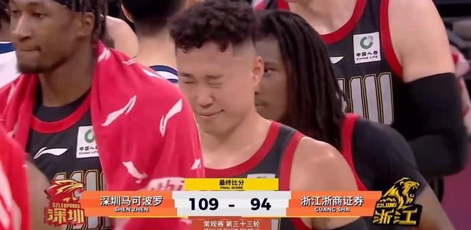 比赛打到这会,悬念已经不大,后半节王博撤下朱俊龙、赵嘉仁提前投子认负,最终这场浙粤大战,深圳凭借上半场建立的27分巨大领先优势,以109-94大胜广厦15分,豪取8连胜!