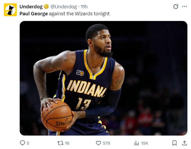美媒Underdog写道:这场比赛的乔治感觉像步行者巅峰期的他。