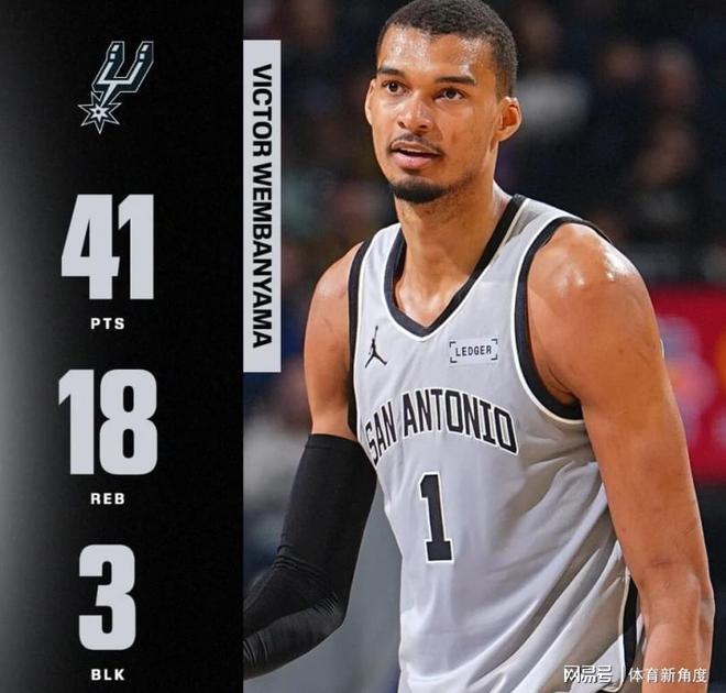 面对公牛队,文班亚马仅用约31分钟便狂揽41分,同时摘下16个篮板,送出4次助攻,还完成3次盖帽;迎队,他更是火力全开,不到29轰下41分,抢贡献3次助攻与