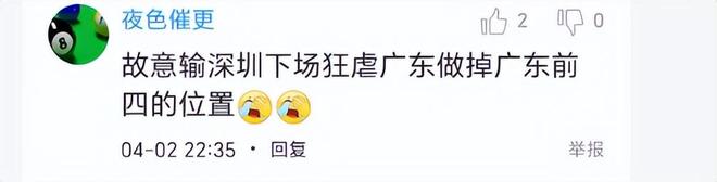 也不排除广厦队是有意输深圳,送深圳队进入前三,下场力克广东队,把广东队打到第四,送他们季后赛与上海队同一个半区。王博让当家球星胡金秋只打14分钟,就能说明问题。有球迷说,“故意输深圳,下场狂虐广东做掉广东前三的位置”。广厦球迷也毫不掩饰地说,“现在最好情况是让深圳到第三,然后广东和北京落入第四和第五,上海要过北京和广东两个,不死也得脱层皮”,也许球迷的看法,就是王博的想法。你们说呢?