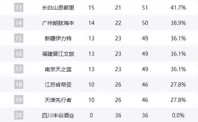 季后赛门票的争夺主要集中在第12名及以后的球队。北控男篮遭遇三连败,错失拉开胜场的机会,目前与吉林队胜场相同,因小分劣势暂列第13。广州队遭遇五连败,但仍紧咬北控1个胜场。新疆、福建和同曦均为13胜,虽落后2个胜场,但在剩余6轮比赛中仍有逆袭可能。江苏、天津因落后5个胜场,已基本无缘季后赛。四川队则遭遇36连败,创造了CBA历史最长连败纪录,提前告别本赛季。