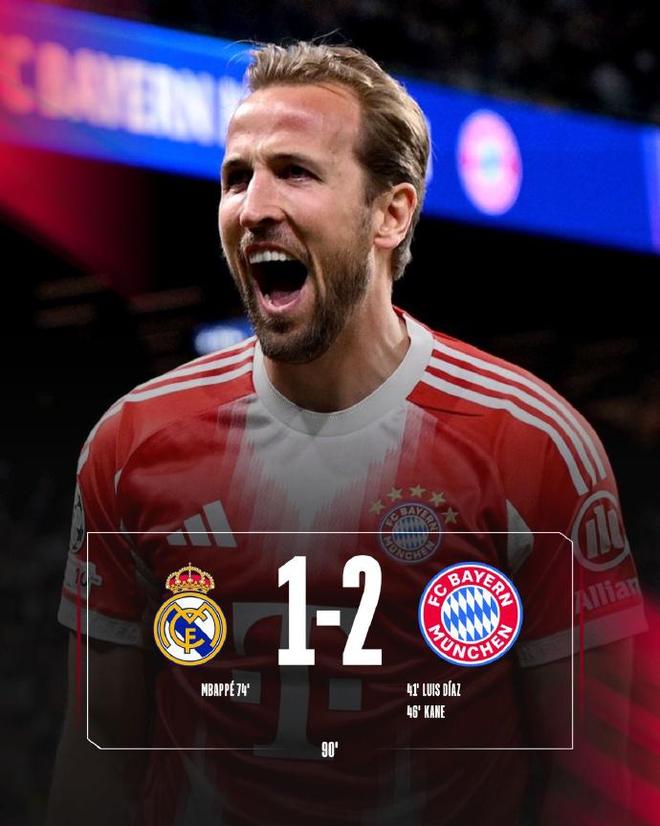 拜仁上半场的两粒进球是迪亚斯与凯恩打进的,球队也时隔多年再度取胜皇马,因为近几个赛季两队经常在欧冠赛事中碰面,拜仁也终结2012年以来对阵皇马的9场不胜得尴尬战绩,此役也是球队2001年后首次在伯纳乌击败银河战舰。虽然首回合只是1比2输球,次回合翻盘的几率仍被认为很大,但是回看历史数据对于皇马极其不利,因为皇马欧冠淘汰赛历史上5次首回合主场失利,最终均无缘晋级。
