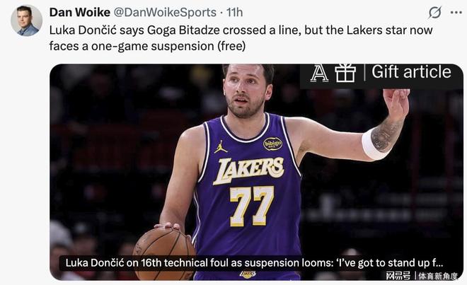 • 好消息,湖人队东契奇避免禁赛,NBA撤销其本赛季第16次技术犯规